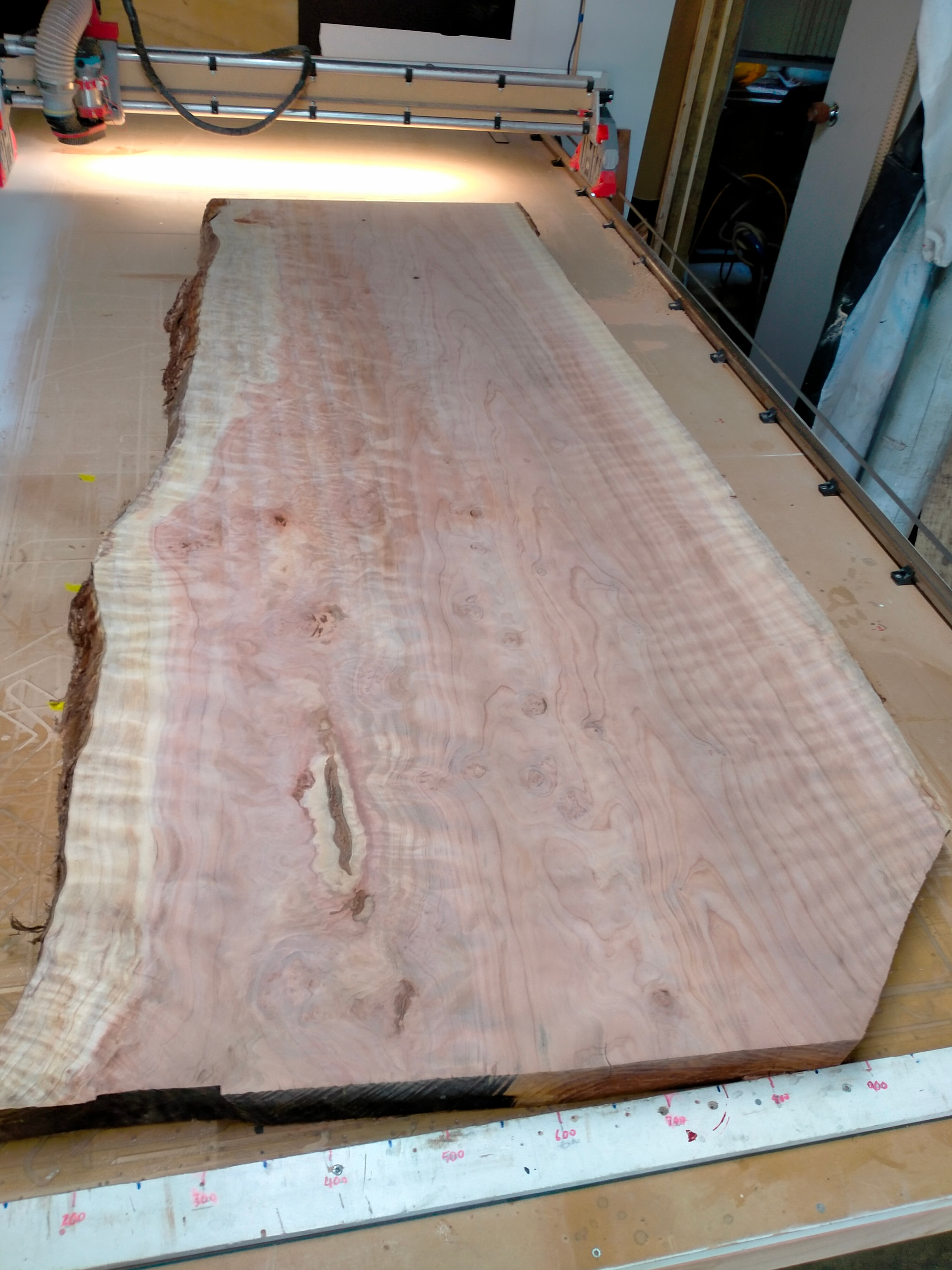 that was redwood slab I surfaced just before xmas, pretty sure that was last pass, and that slab was a pain due to all the compression , it wanted to tear out so much. i normally surface redwood at 1mm per pass , could only manage .5mm passes