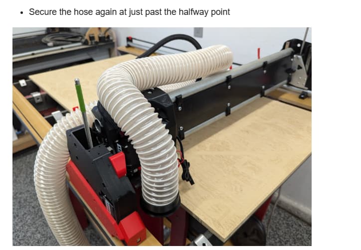 Cycling X to min and max the wire loom droops so much I’m worried about it snagging. The vac hose not being held at the edge is bothering me too - it slides off towards the floor then at the opposite end of travel it has to ‘pull’ the hose back again.