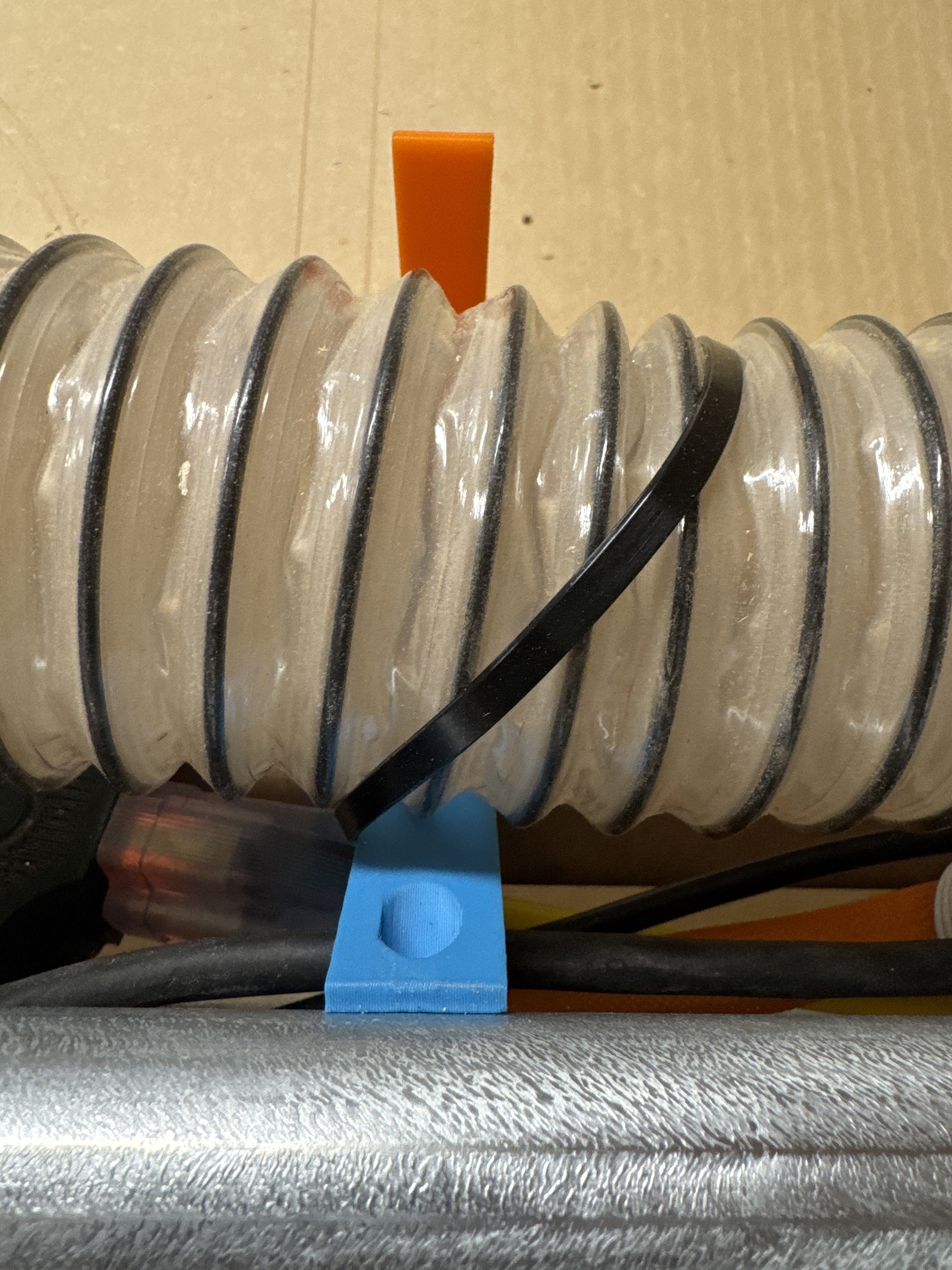 fwiw shared minor edit on v1engineering-mods/lowrider4/mods/vac-hose at main · aaronse/v1engineering-mods · GitHub am not sharing on printables or elsewhere, in part because am not using the slot even… A combo of Gravity, friction, careful placement of zipties and narrower gap between braces seem to be good enough, even with this floppy Vac hose.