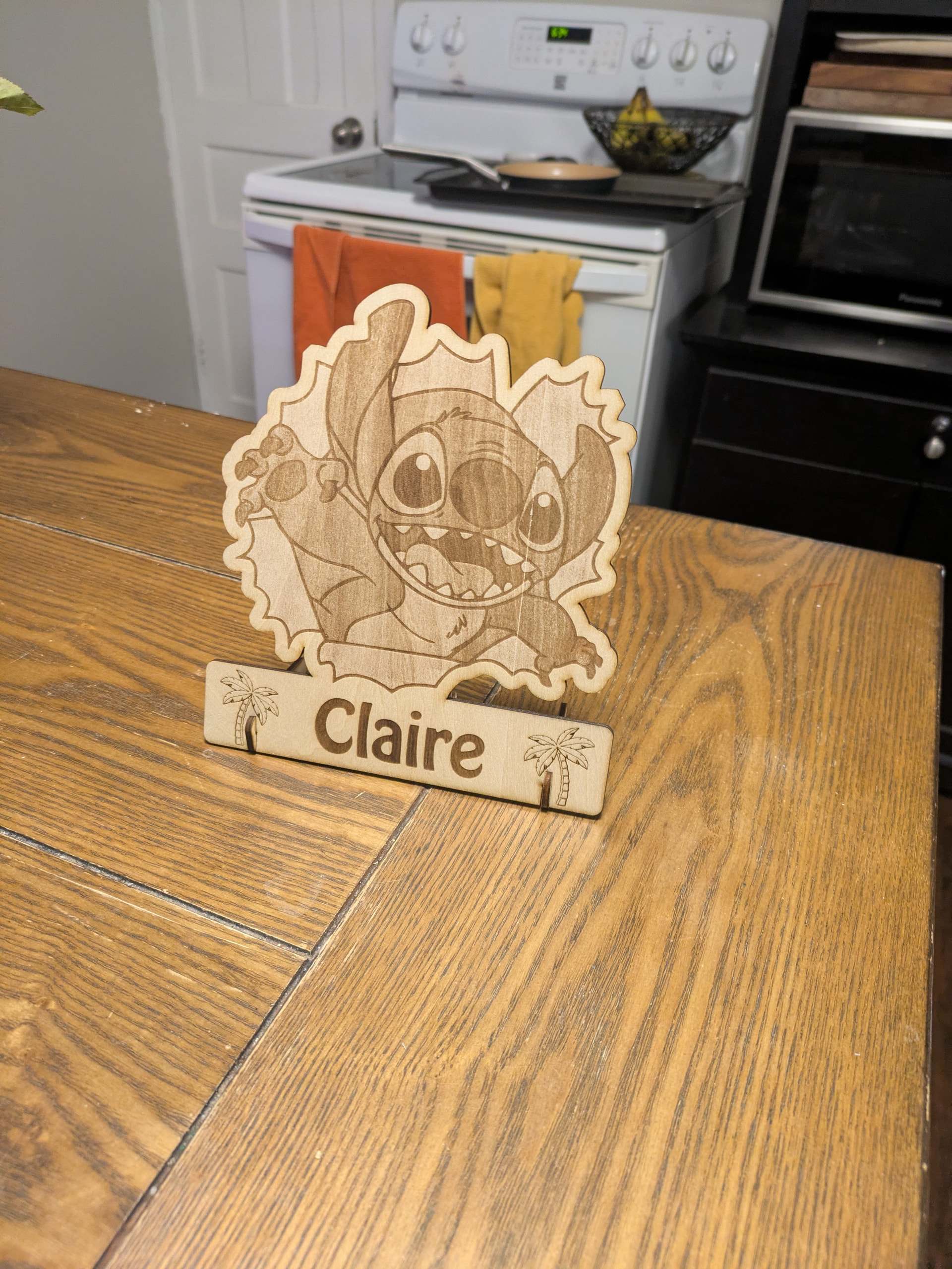 Had a co-worker after seeing my laser etch of my doggos asked if I could do up a sign for their daughter who loves stitch from Lilo and Stitch. Amy excuse to play! Figured I’d share. Little upset with the material (OCD is going crazy due to the single vertical line on the mid-right)