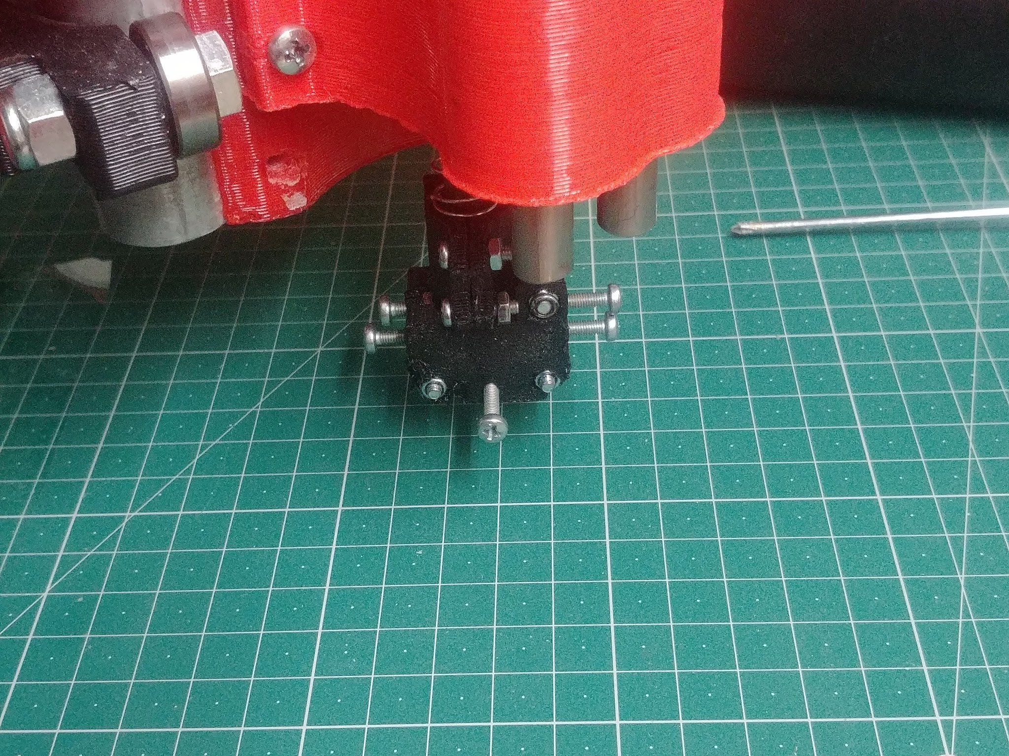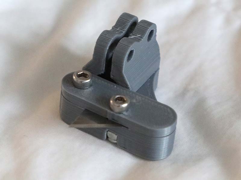Having tried to consistently get acceptable centre axis blade tip alignment with your mount, I now recognise the need for your new design with side screws. What’s great about this approach is I’ll be able to align the tip precisely after mounting it. Box cutter/Stanley blades actually have a tip that is shy of the angled back edge of the blade, so along with the fact the mounting design (inherited largely from the original) it’s been difficult to get the blade centred. The one of yours I’m using has been an improvement for the thick material, but I’ll be trying out the latest idea next.