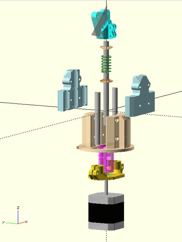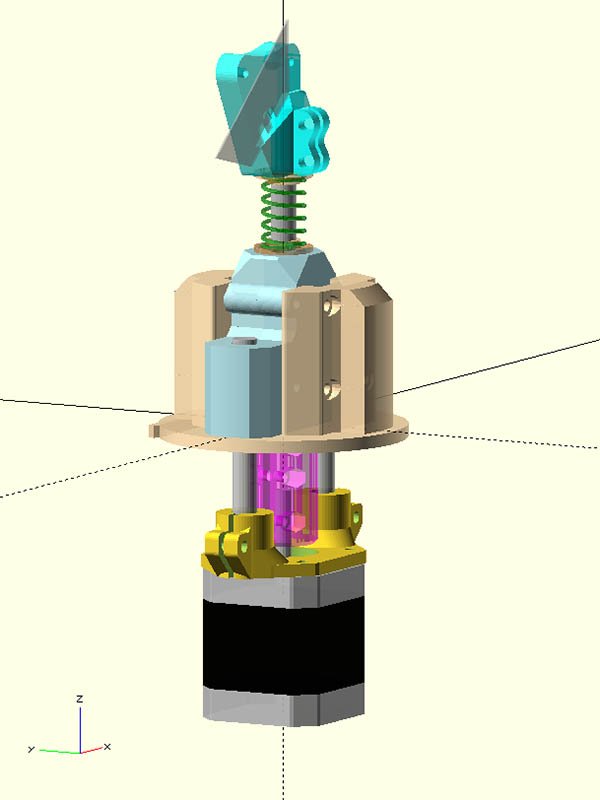 I found some openscad code to generate a spring sized to what I am using to make the openscad assembly look better. I might try printing a plastic spring to see if that will work. I will make it less coils to get a better print angle & make it thicker gauge. I can not get more than about 15 degree angle, so it probably won’t print well.