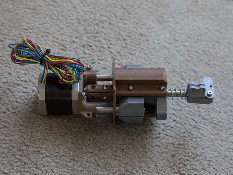 Here is my 1st assembly of the parts. I am using the metal bushings. I will test fit it on the machine tomorrow, but should fit as I test fit the main parts before. I see a couple of things I still want to change, but feels pretty sturdy. I do not have any tension on the spring and the plastic coupling is resting on the top bushing. I realized the collar I was originally going to use did not seem to be needed. I made the coupling 38mm high with 20mm to grab the M8 rod & 16mm to grab the 5mm Motor shaft. I bought a metal coupling, but I did not like that it only has around 8mm to grab the 5mm shaft.