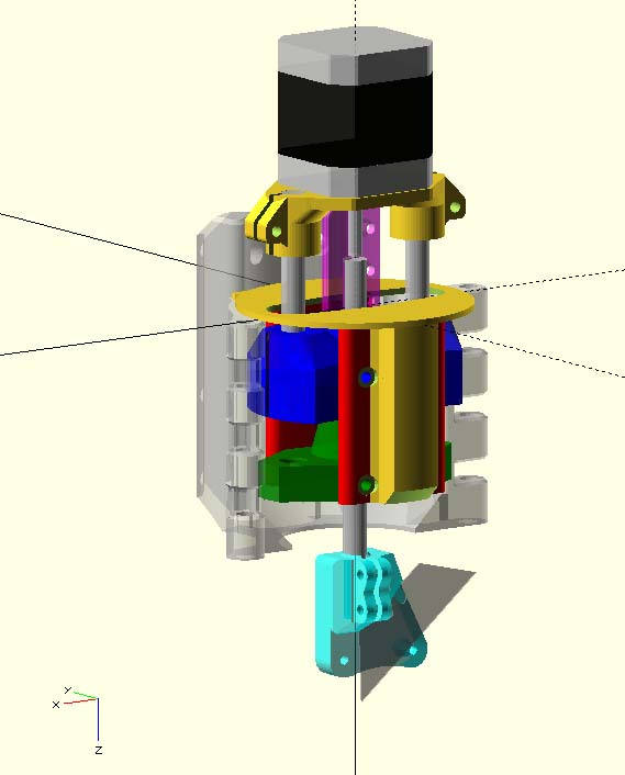 I am constantly amazed at what can be done in openscad. Most of my parts came in on Saturday, so I will test print some parts for fit today with the bearings. I am planning to use 4 of the drylin Igus bearings, 2 on the main shaft & one each on side M8 rods and a 608ZZ skate bearing on the bottom end of the side shafts.