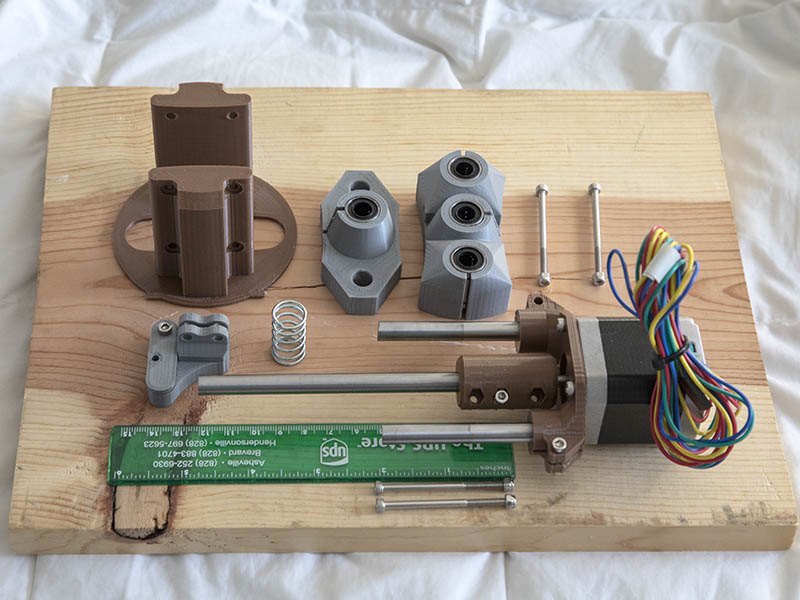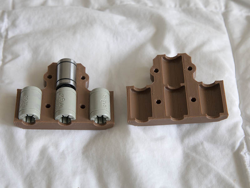 I attached a better photo of all the parts separated. I might make those middle 2 parts one part & just extend the center linear bearing hole for 2x 24mm high bearings.