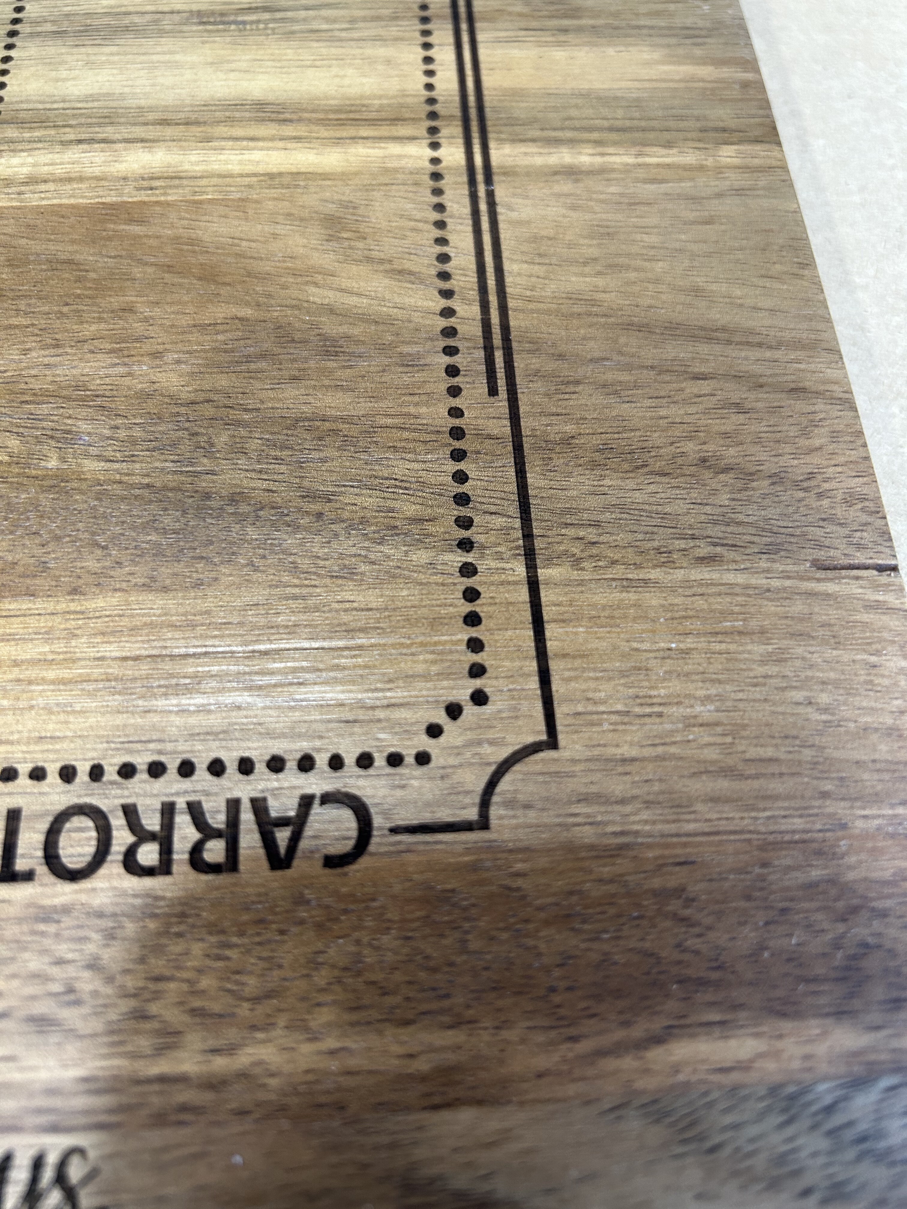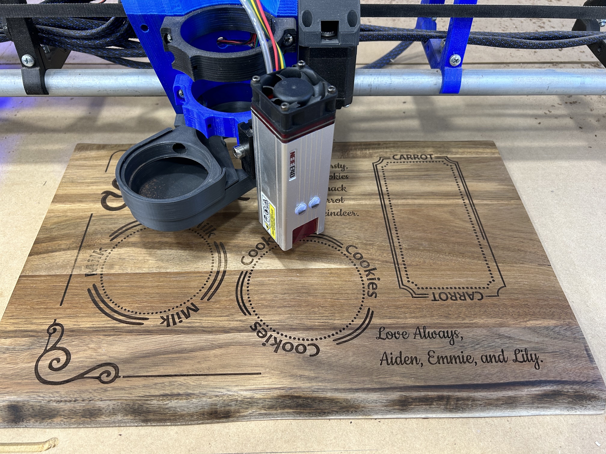 They are turning into a headache- mainly because I got talked into doing a bunch (8) Santa platters for teacher gifts and friends. Each one is 12x18, lots of elements, and Iām running the laser at 30mm/s 100% power. Ends up being a 4 hour session, each. Faster than that, it skips, so Iām kinda at the limit.