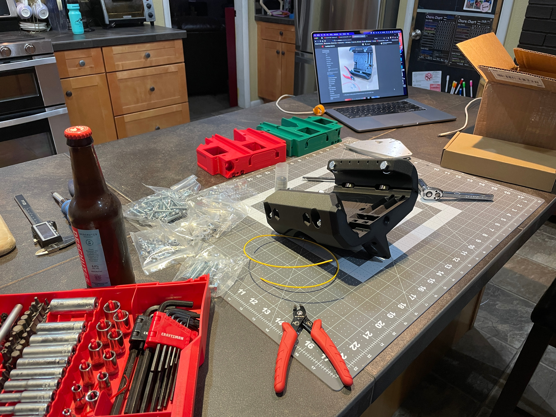 With Ryan’s detailed assembly instructions on the screen I gathered my tools and materials and posted up at the kitchen counter to start building (since it was freezing outside in the shop). As usual, I under estimated the time it would take to finish this part of the project (if my lovely wife ever read this post she would be rolling her eyes). The next morning I moved the project over to the dining table as I couldn’t continue to monopolize the kitchen counter without risk of upsetting my spousal unit.