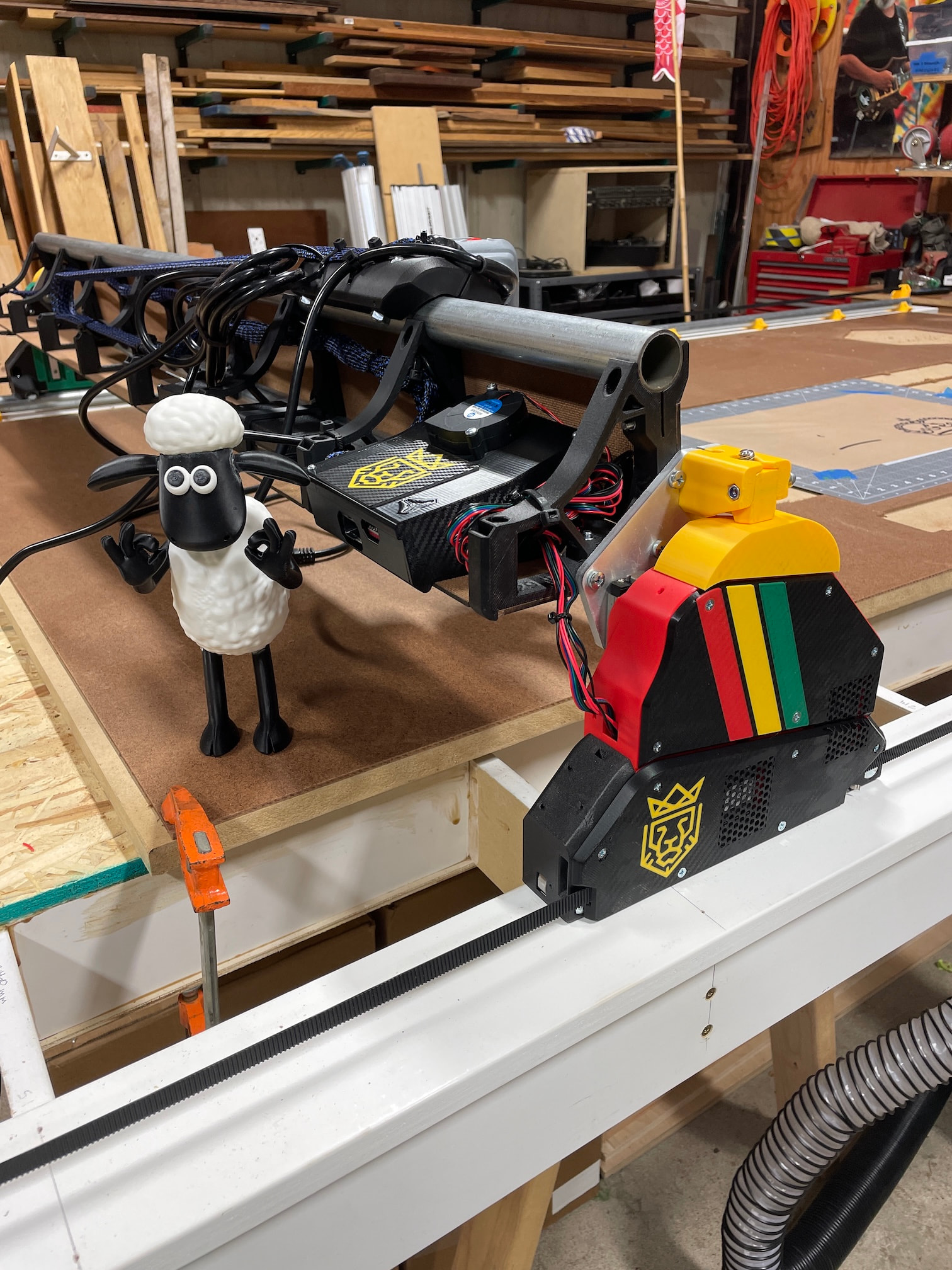 Why Red, Gold & Green? My primary motivation to build this machine is to to use it for speaker building- specifically large PA speakers for playing reggae and dance music at events and parties. Red, Gold and Green are the colors of the “Rasta rainbow”. Even though I’m not a true Rastafarian myself, I love reggae music and its usually what’s blasting from the speakers in my shop anytime I’m working on projects. This machine is inspired by, and largely built for, speaker building and my love of music.