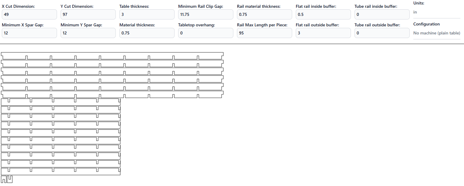 I can try but my understanding is incomplete so apologies in advance if I get things wrong. My first version of the table generator (the one I used for my own table) assumed that the cut area was centered in the x/y directions, which I have realized is incorrect. This is now corrected in the X direction but not Y.