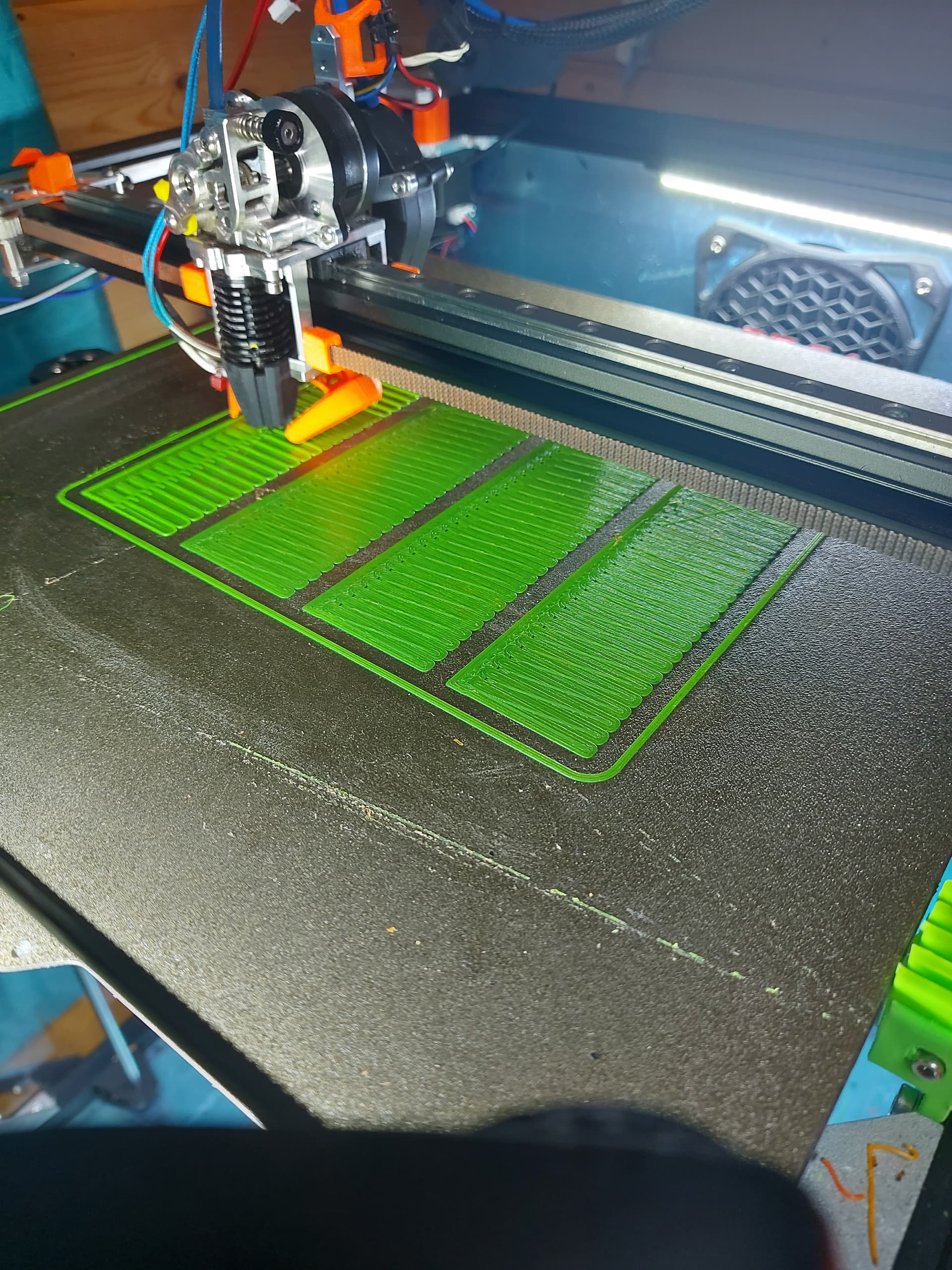 Tried to find hints or recommended printers settings for vac hose bristles at https://docs.v1e.com/lowrider/#printed-parts. Couldn’t find there, but did find printer settings hints in the Printables description for the router specific vac parts. Personally used 0.6mm nozzle, 0.32mm layer height, 5 walls for the TPU bristles to help minimize infill and retractions that increase risk of jamb. Bristle finish seem smoother for it. Thoroughly dried overture tpu 95A filament came out more flexible than some of the earlier bristle designs Ryan shared with beta folks. Have some high speed printing TPU that’s easier than regular TPU.
