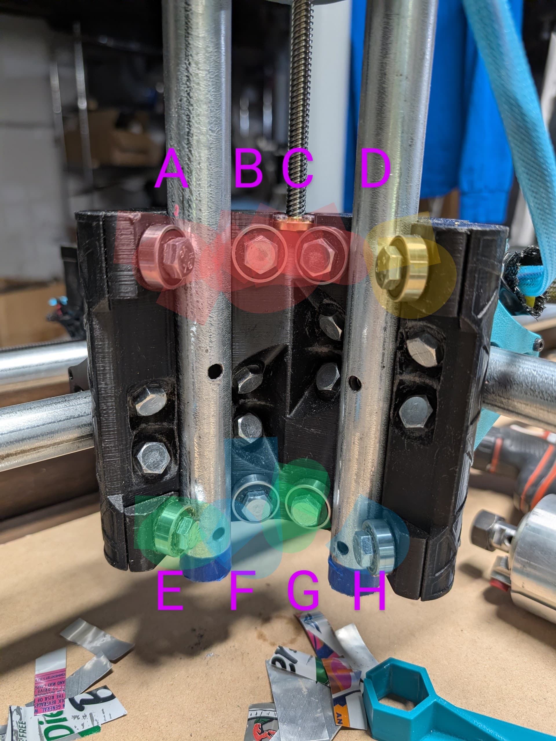 Should I be going for equal tension on all 8 bolts or should some of them be tighter than others? I’m guessing the ones in red should not be that tight, but should they be down to yellow, green, blue tightness?