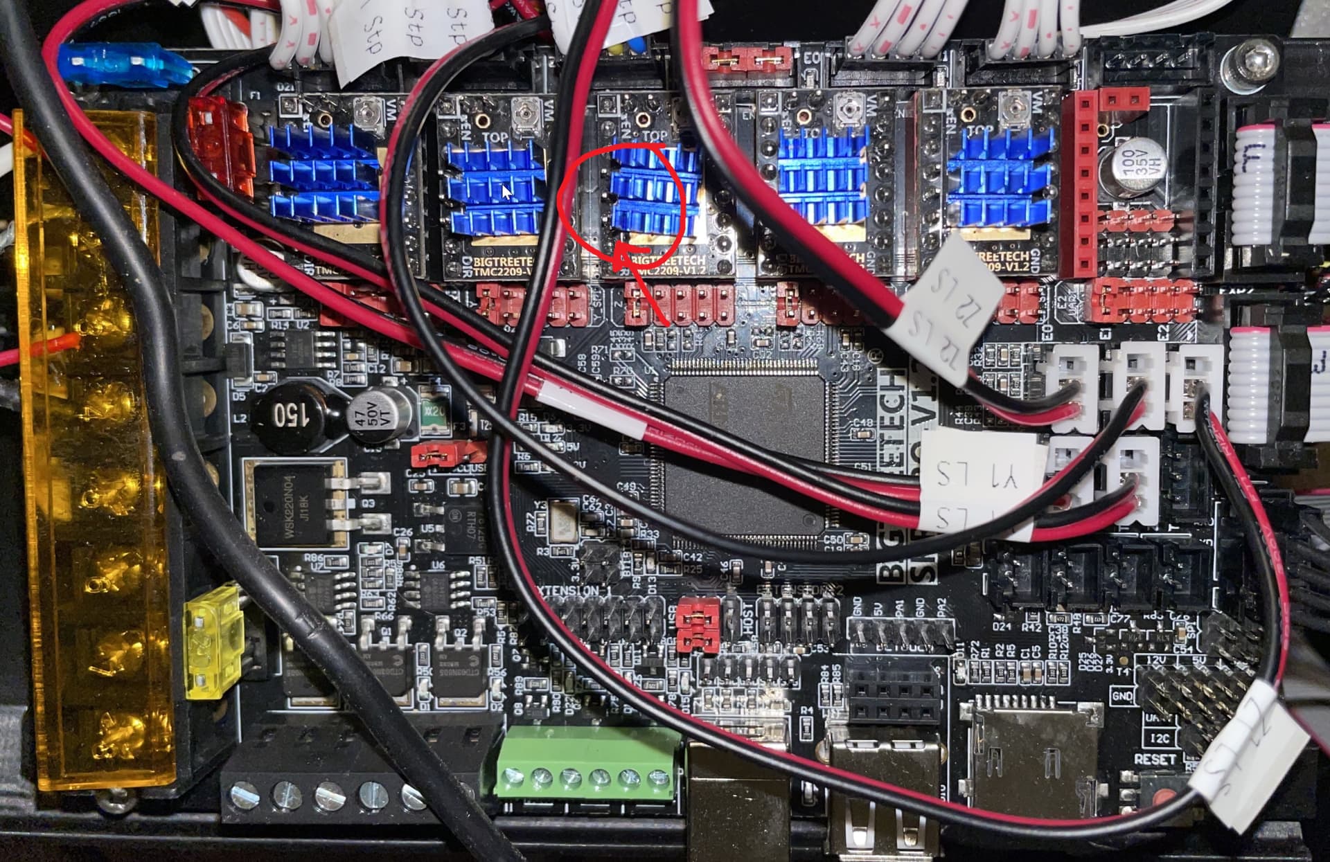 I took a magnifying glass to the skr and didn’t see any missing solder or burnt components. The only thing I noticed is the pin that I bent on the driver was not bent all they way and it could of touched the top of the capacitor. I’m not sure if that could of fried something on that port.