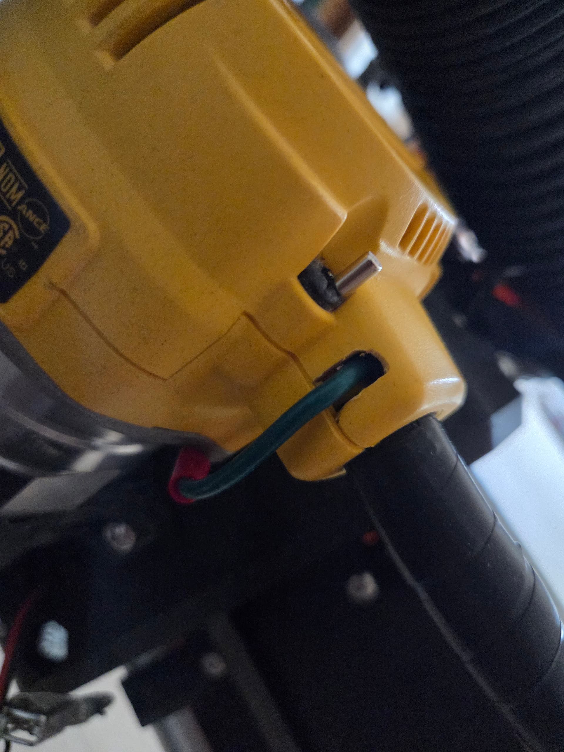 I attached the ground wire to the body using the housing screw shown in the photo, then routed the wire into the original wiring channel. To make room for the wire, I drilled a small hole in the top housing, fed the ground through, and sealed everything up with heat-shrink tubing. After that, I installed a new 3-prong plug on the end.
