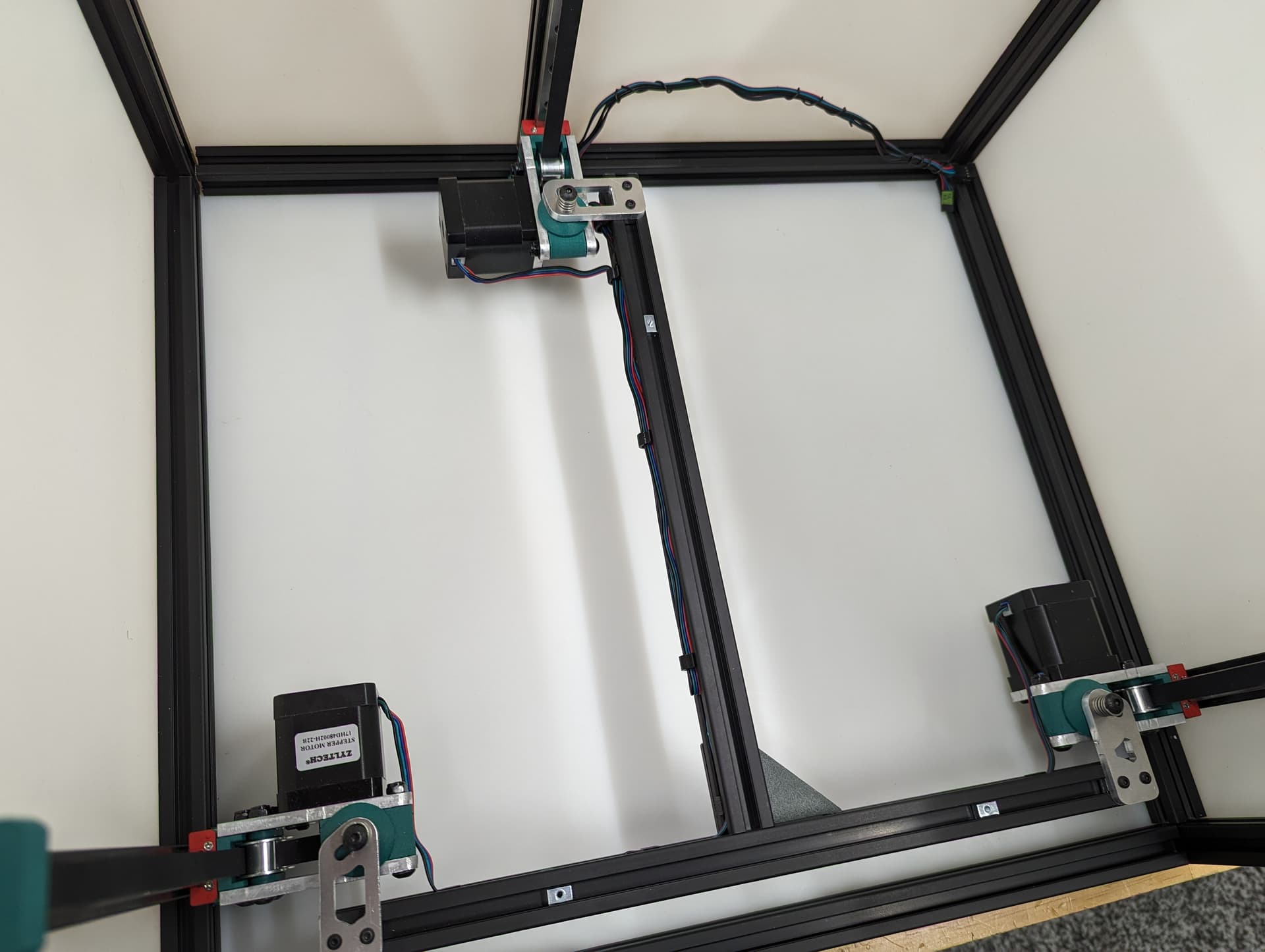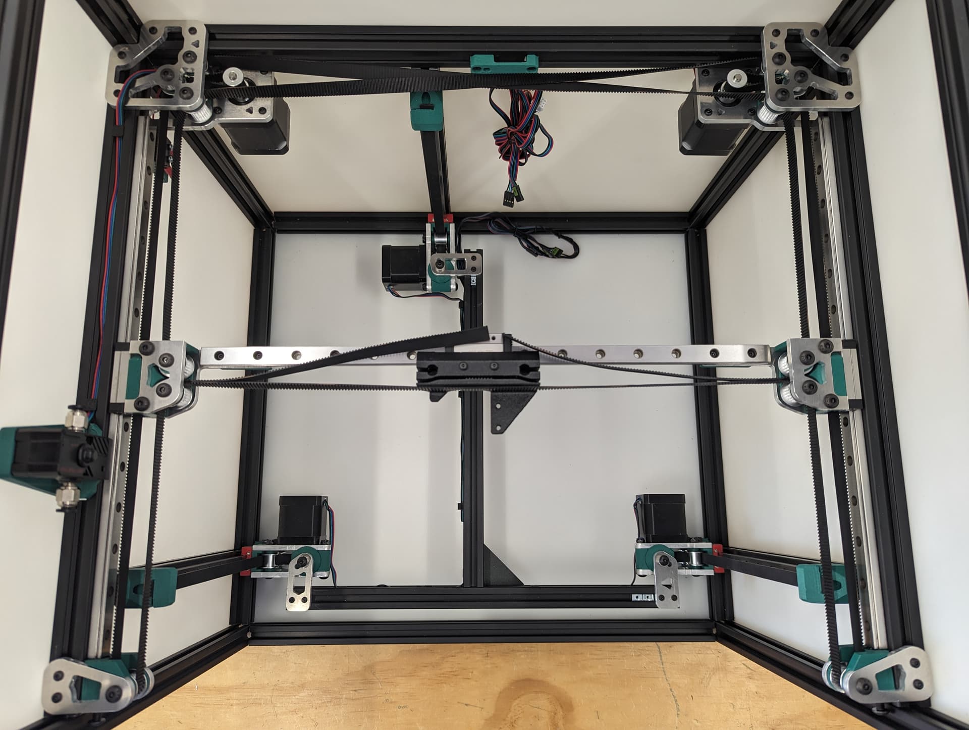@azab2c This is one of the devs for my printer. We use 1515 extrusions and quarter inch hdpe for the side panels. The side panels are what square the printer extrusions. It’s quite strong.
