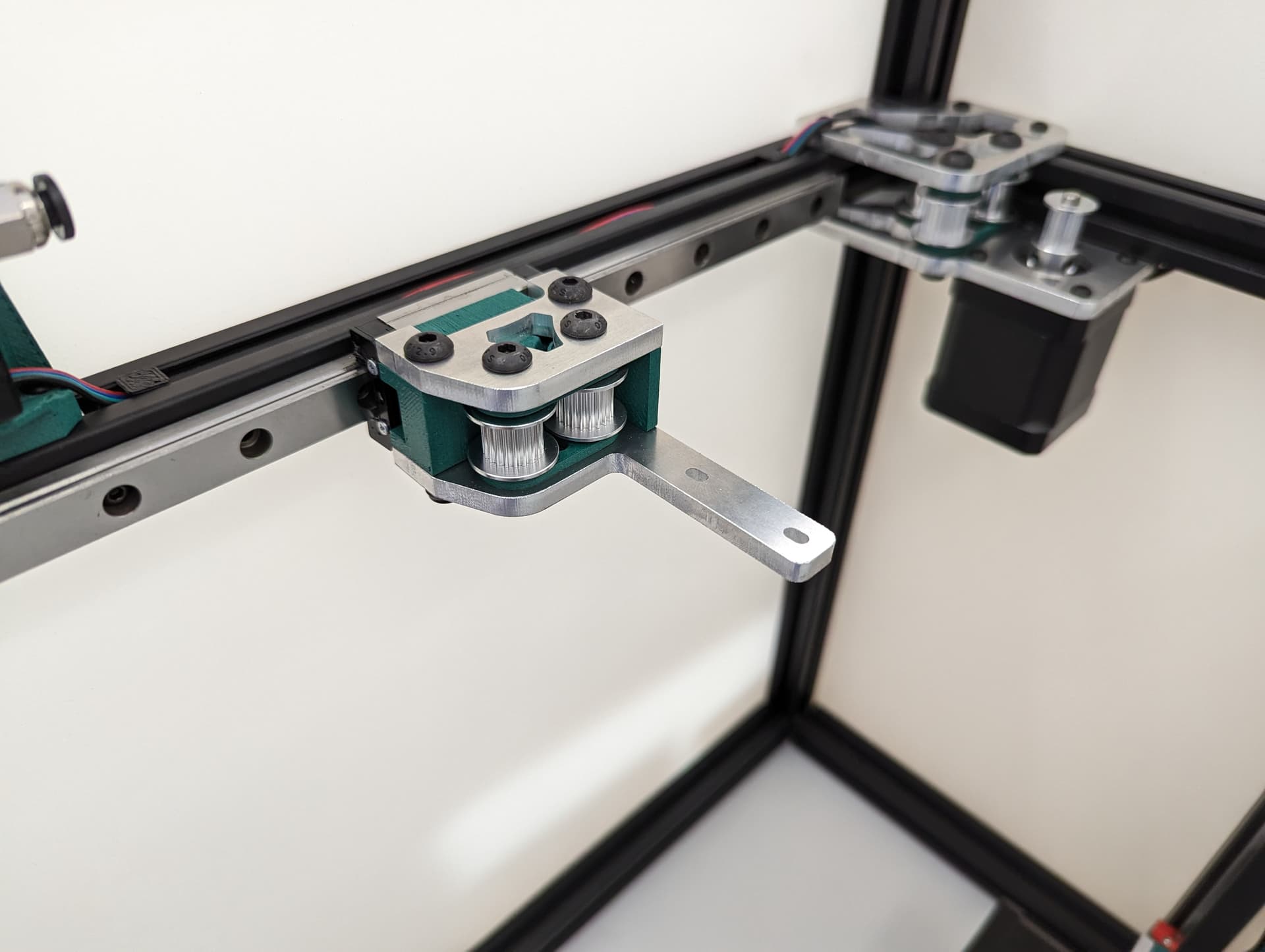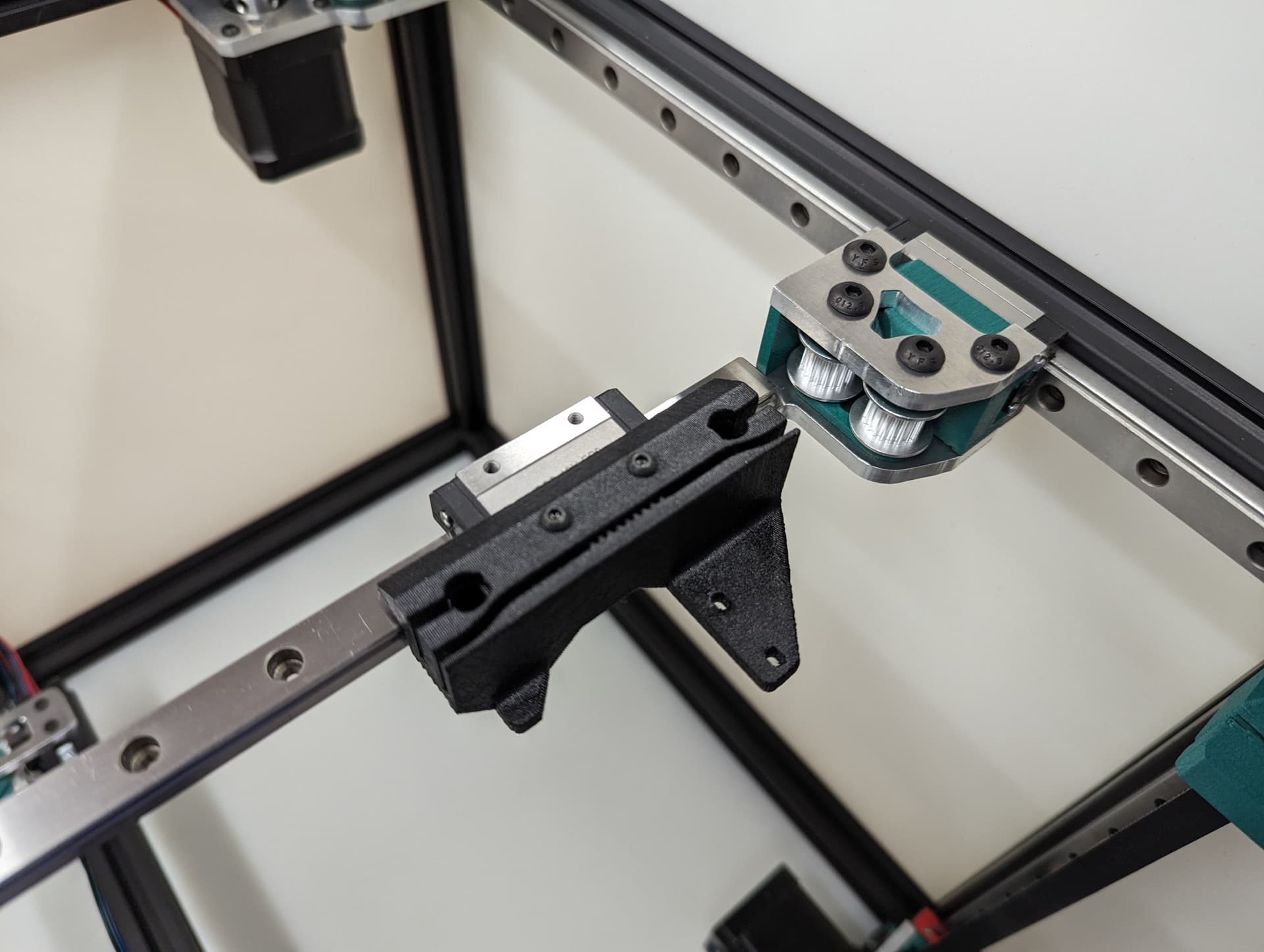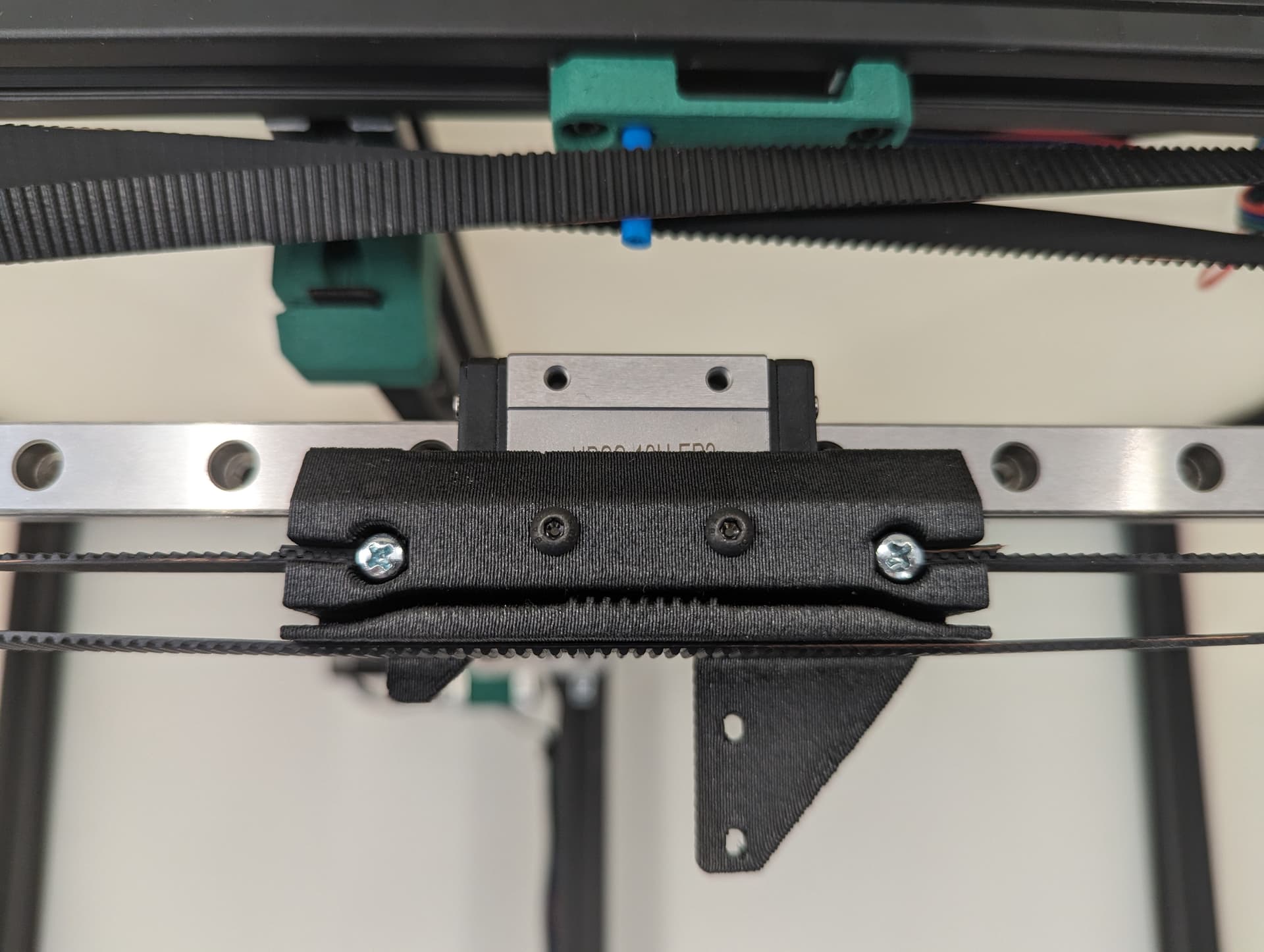 Thread in the belt and add some tension, you should be 2-10mm gap from the top of the rail. The test here is to make sure your Y trucks don’t hit in a later step.