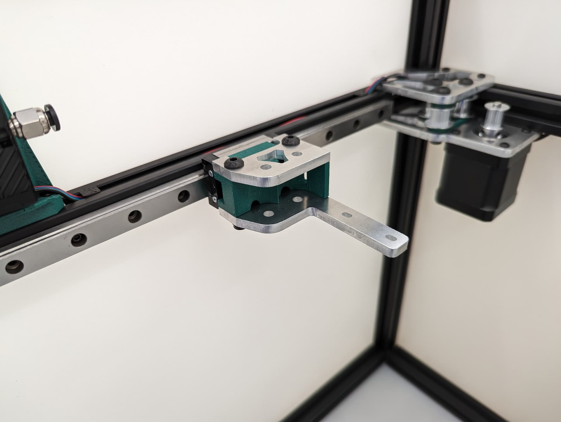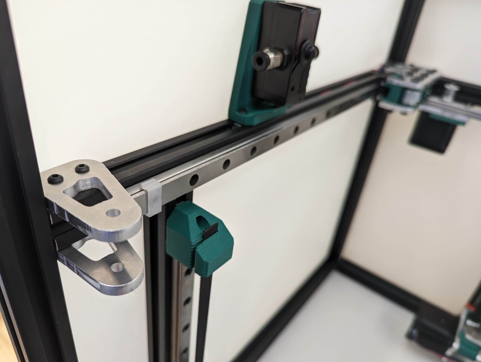 -Add the rail, make sure it is centered left to right, and that it is centered front to back on the lower rail plate. In this step when you snug up this rail you will want to make sure both corners hit the trucks the same and there is no gap on either side. This will mean your axis is starting nice and square (you can move it with the belt tension but more on that later).