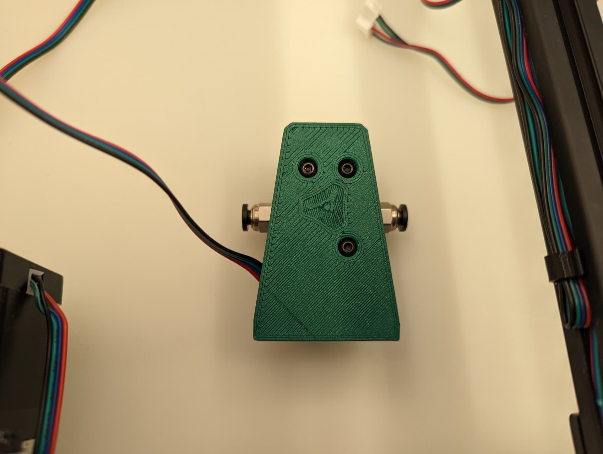 Screw on the stepper, pay attention to the wire orientation.