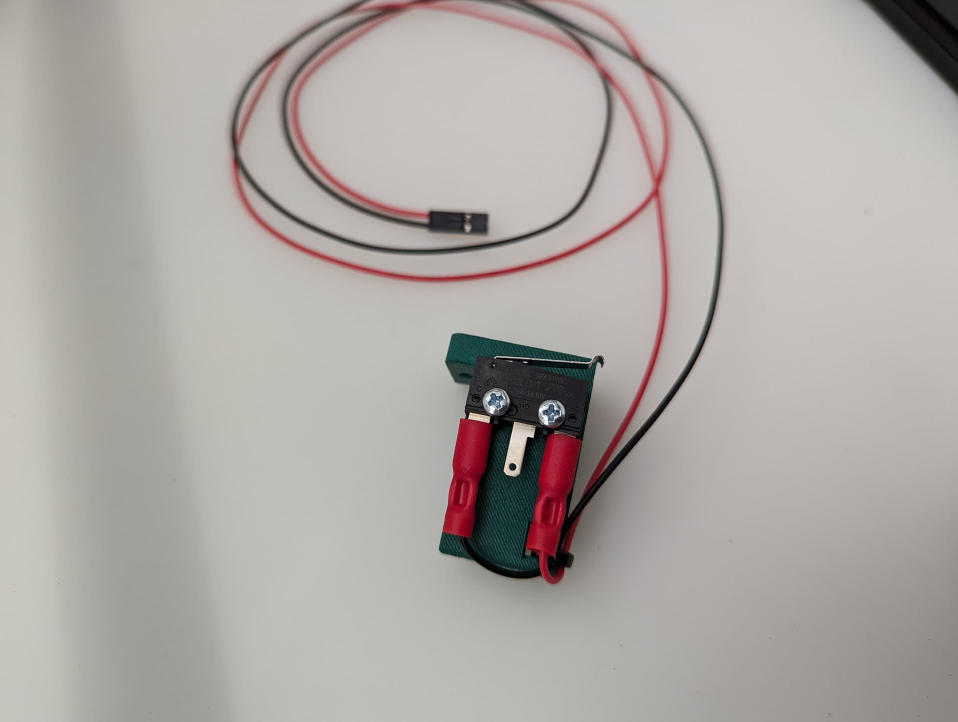 Wired, Normally Closed for easy diagnosing of crimp issues, and highest safety. Mounted to the bracket with M2.5mm screws.