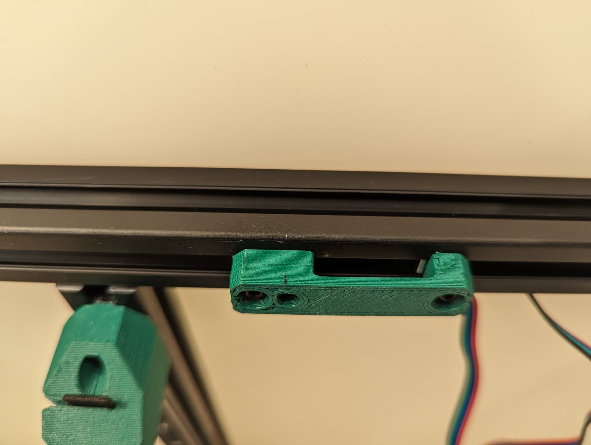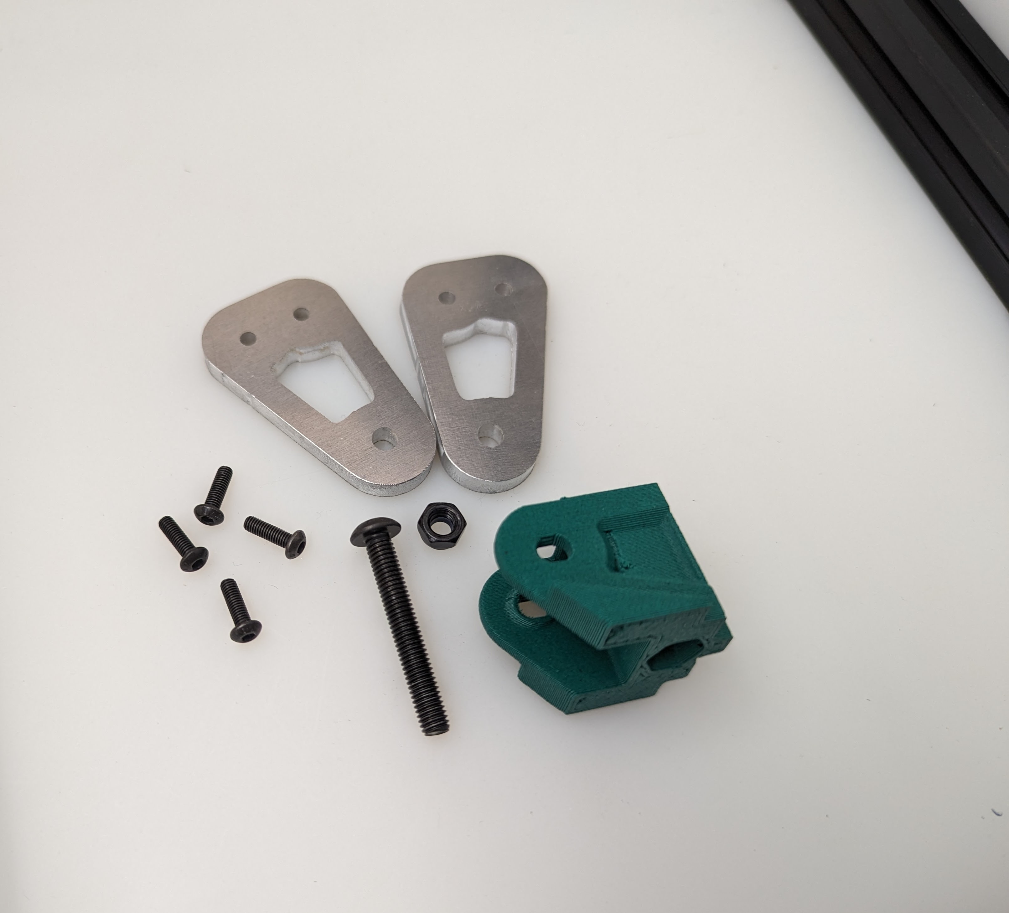 Center the rail on the extrusion, The end is flush with the corners. M3x8mm screws to secure.