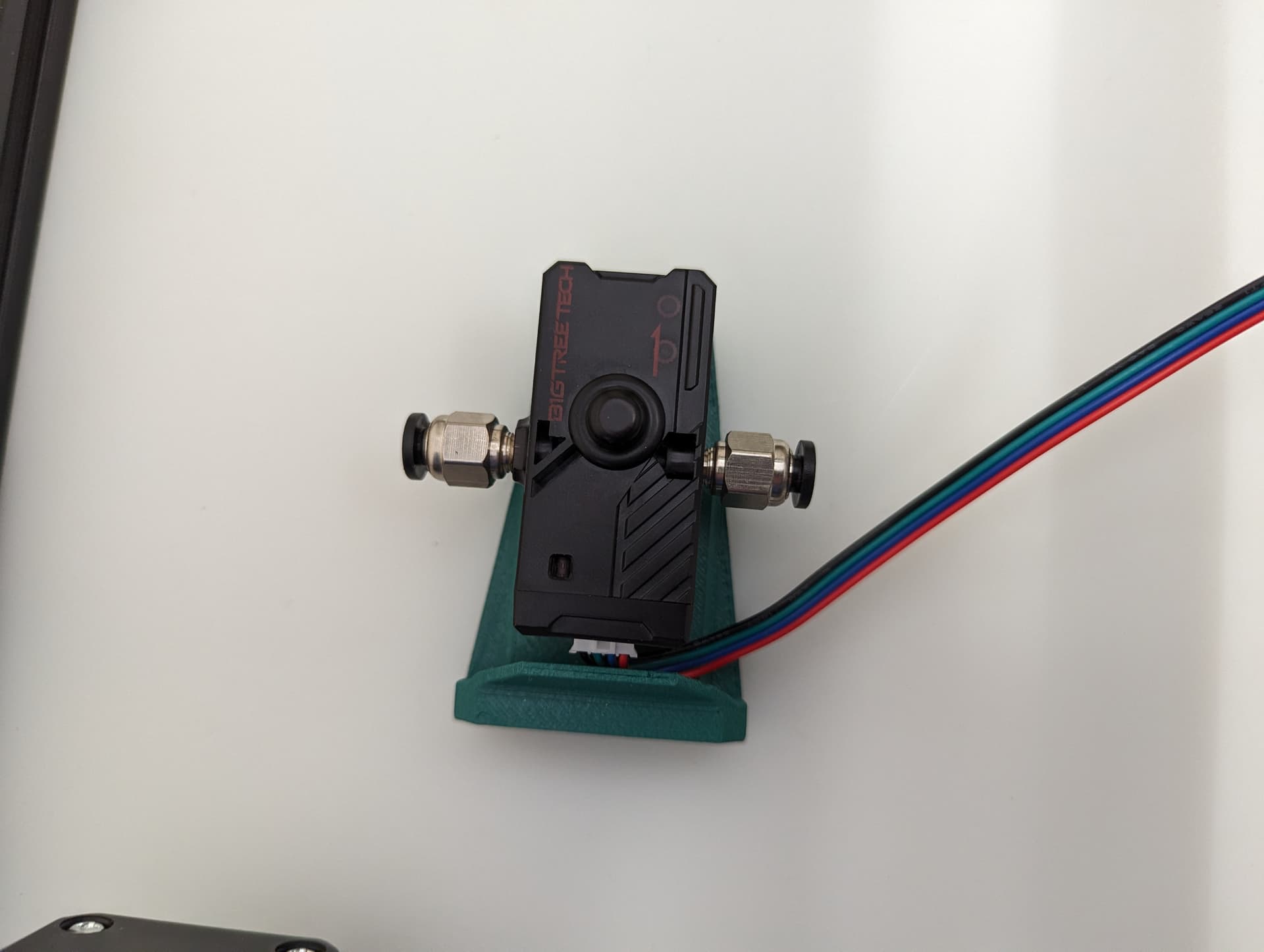The end of the sensor output tube goes in the middle of the travel for your Y axis in relation to the feed tube input of your extruder.