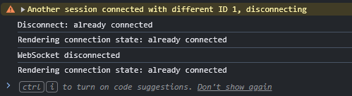 When it disconnects because you connected somewhere else, it now shows this message: Already connected from another session