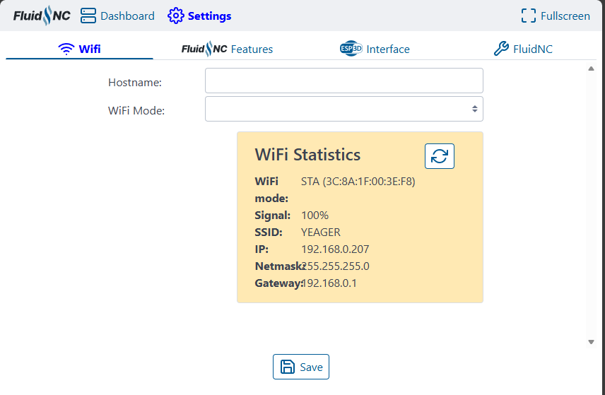 WiFi Settings - The only potential issue I see (I didn’t test this), is that if you choose to display the password, it’s all asterisks since FluidNC won’t provide that info. I’m curious if that could inadvertently change the password to asterisks. I suppose each piece of information is a separate command so it’s probably ok.