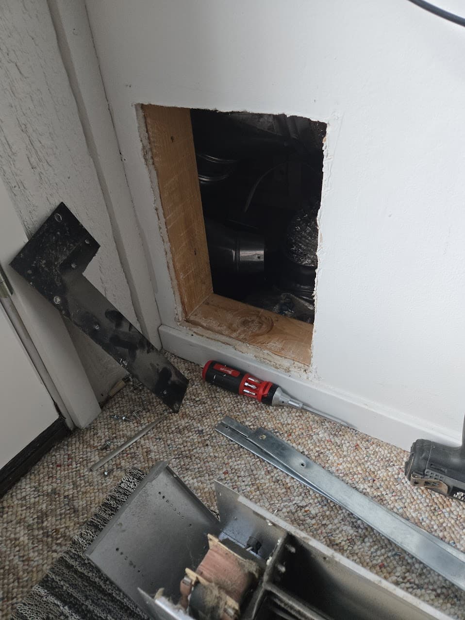 Been playing hvac guy. This is a blower that pulls hot air from the gas fireplace enclosure and blows it into my office, and Shaneh’s office downstairs. All though a 9 by 13ish access hole.