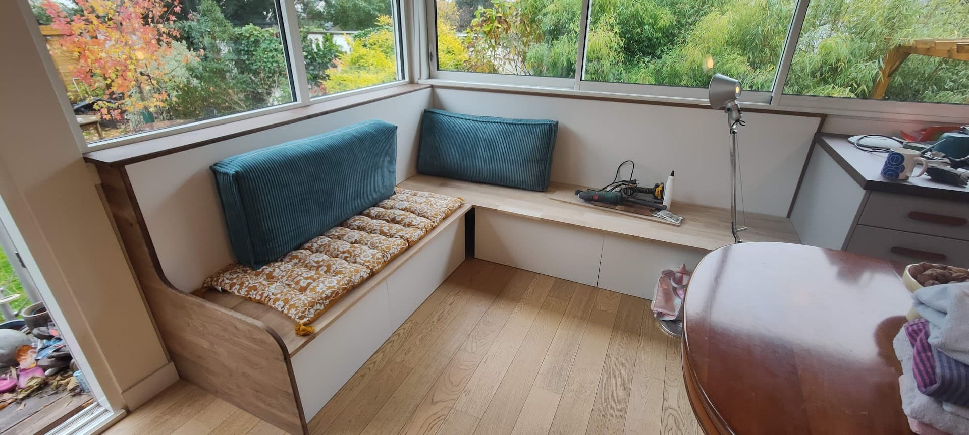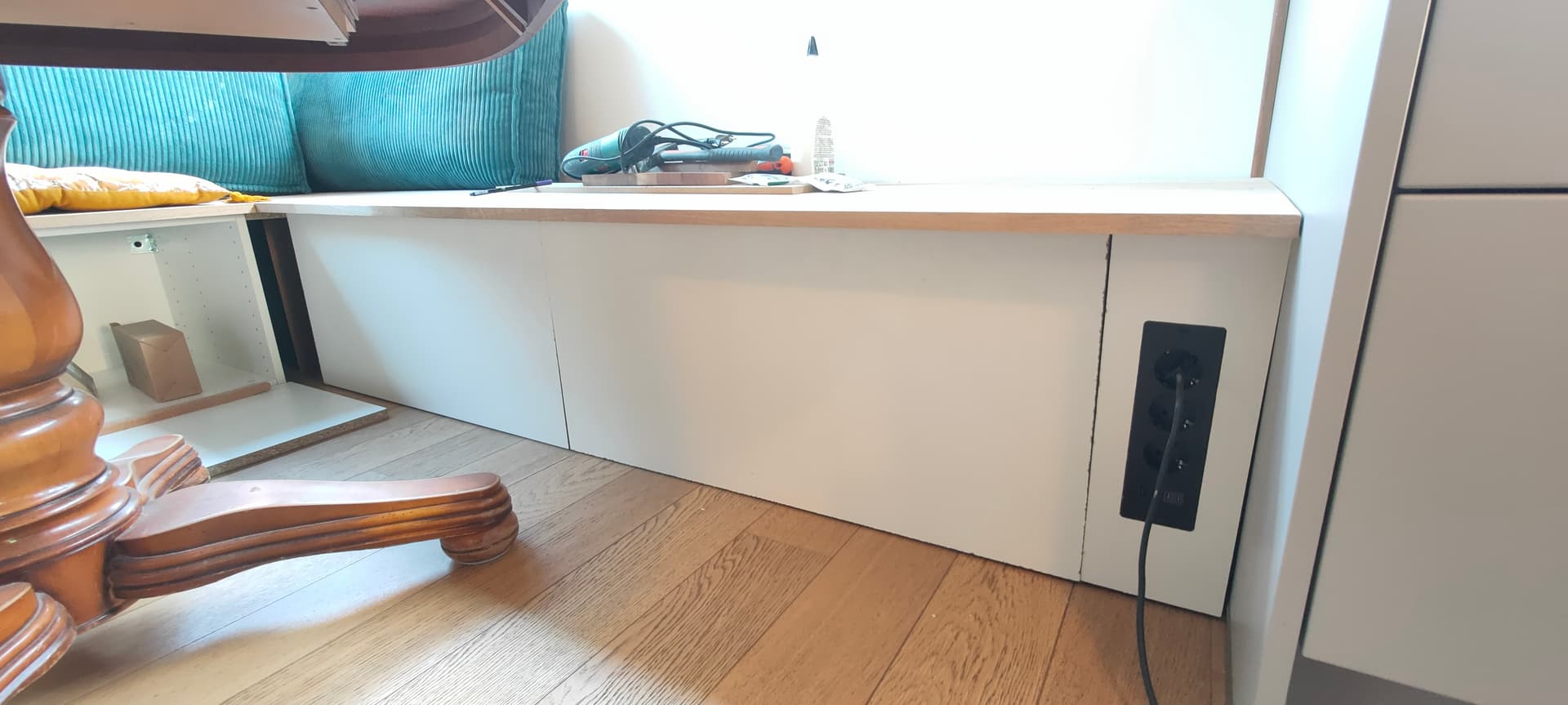 All of which distracted me from the job in hand, which was rebuilding the compressor cupboard and drawers and making some new fronts for them (painted MDF). Which reminded me that I didn’t have a way of keeping the “other” side off the bench while I rolled the paint so…