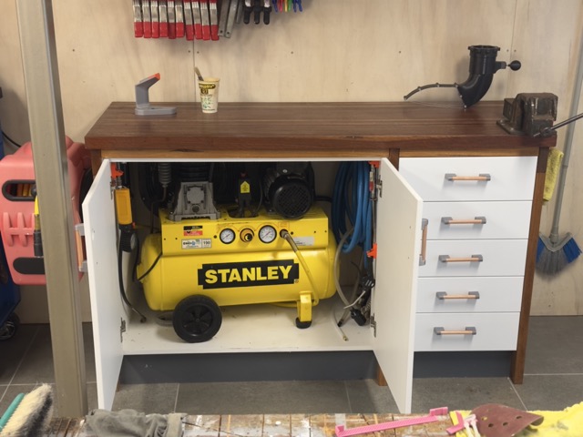 It might be hard for some of you to remember, but October was “clean up the shed” month at my place, and when last I posted I think I’d finally moved the wood vice from the compressor bench, and that meant moving a heap of timber that I had stored to trim off my workshop drawers. I seem to have been doing stuff every day, but really haven’t got terribly far I’m afraid.