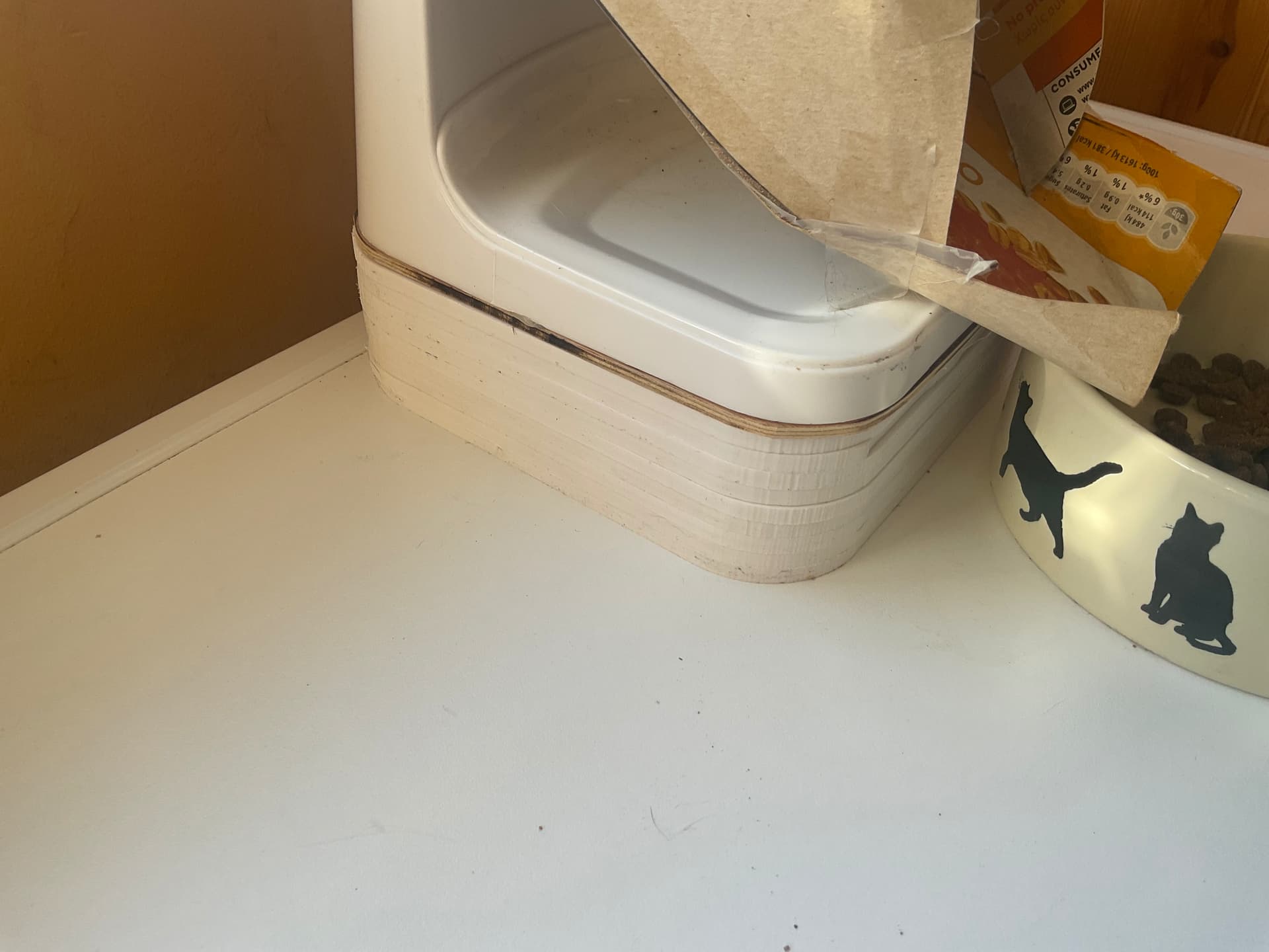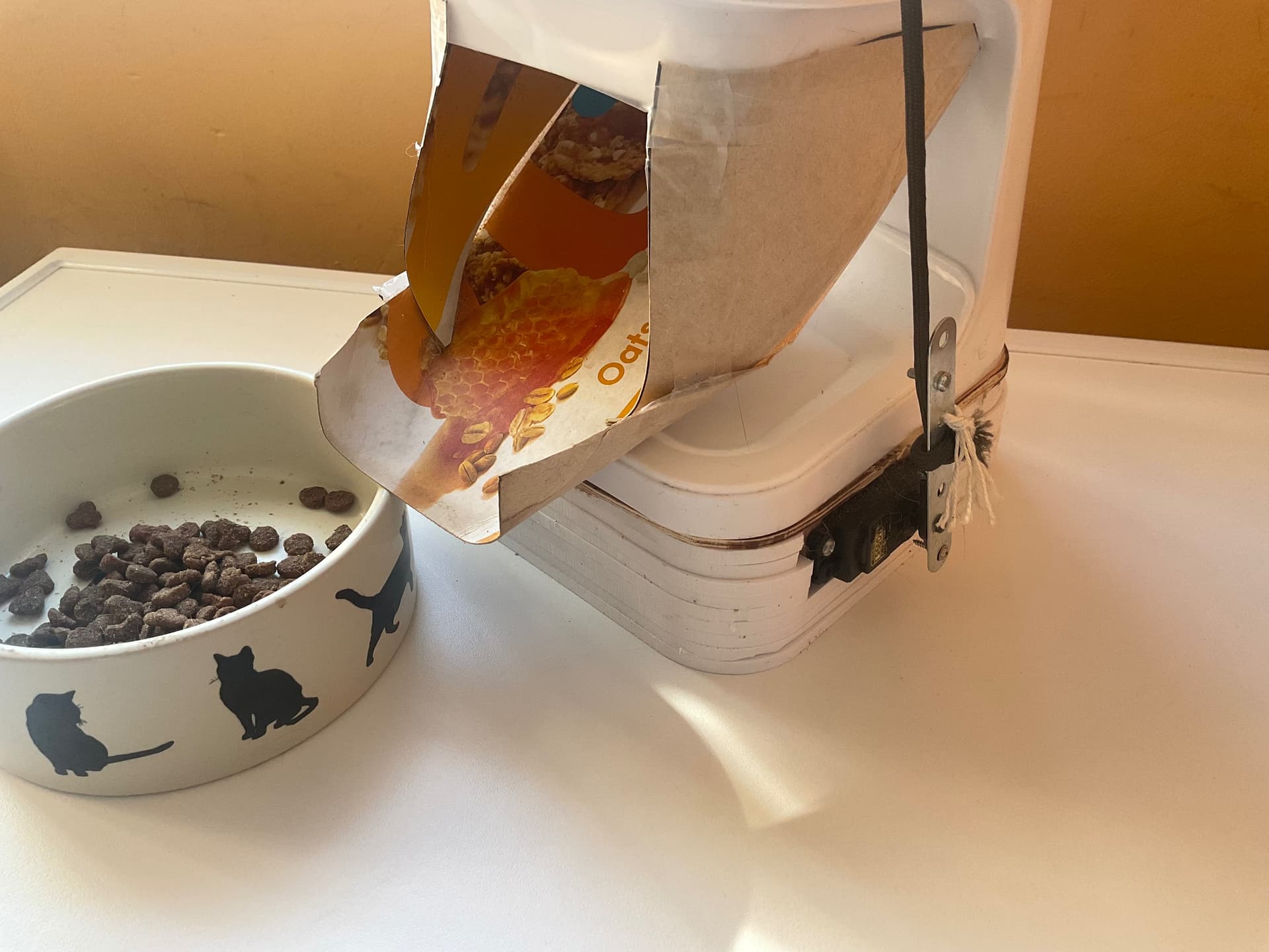 The base for an automatic cat feeder. Made using a cereal dispenser, a servo and (of course) a tiny esp32 running esphome.