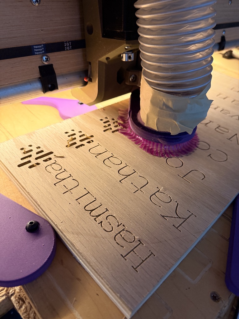 Update: I was able to create a DXF of the name plates! Does anyone have tips on carving text with a 45* V bit? I have the bit from the v1 shop.