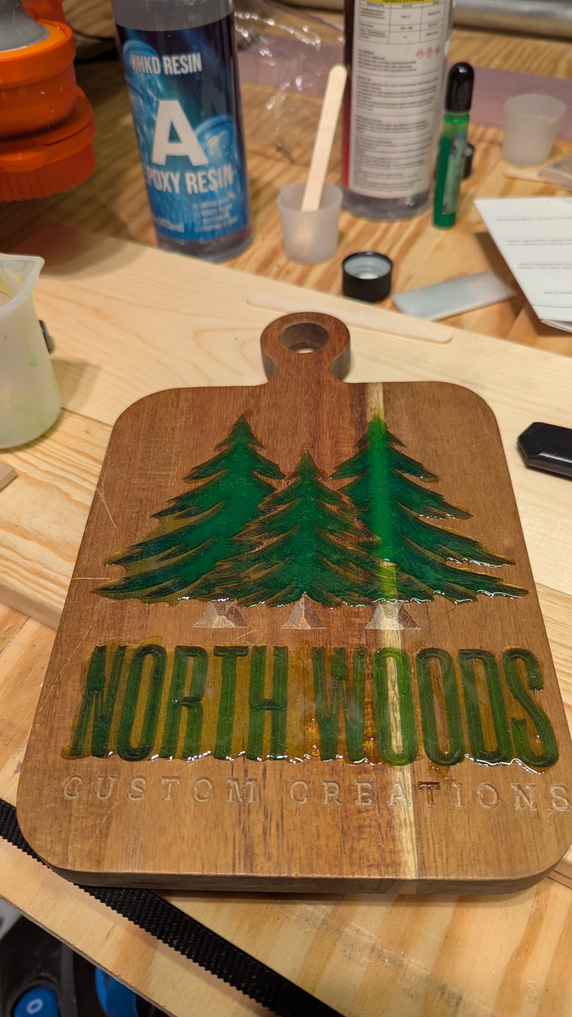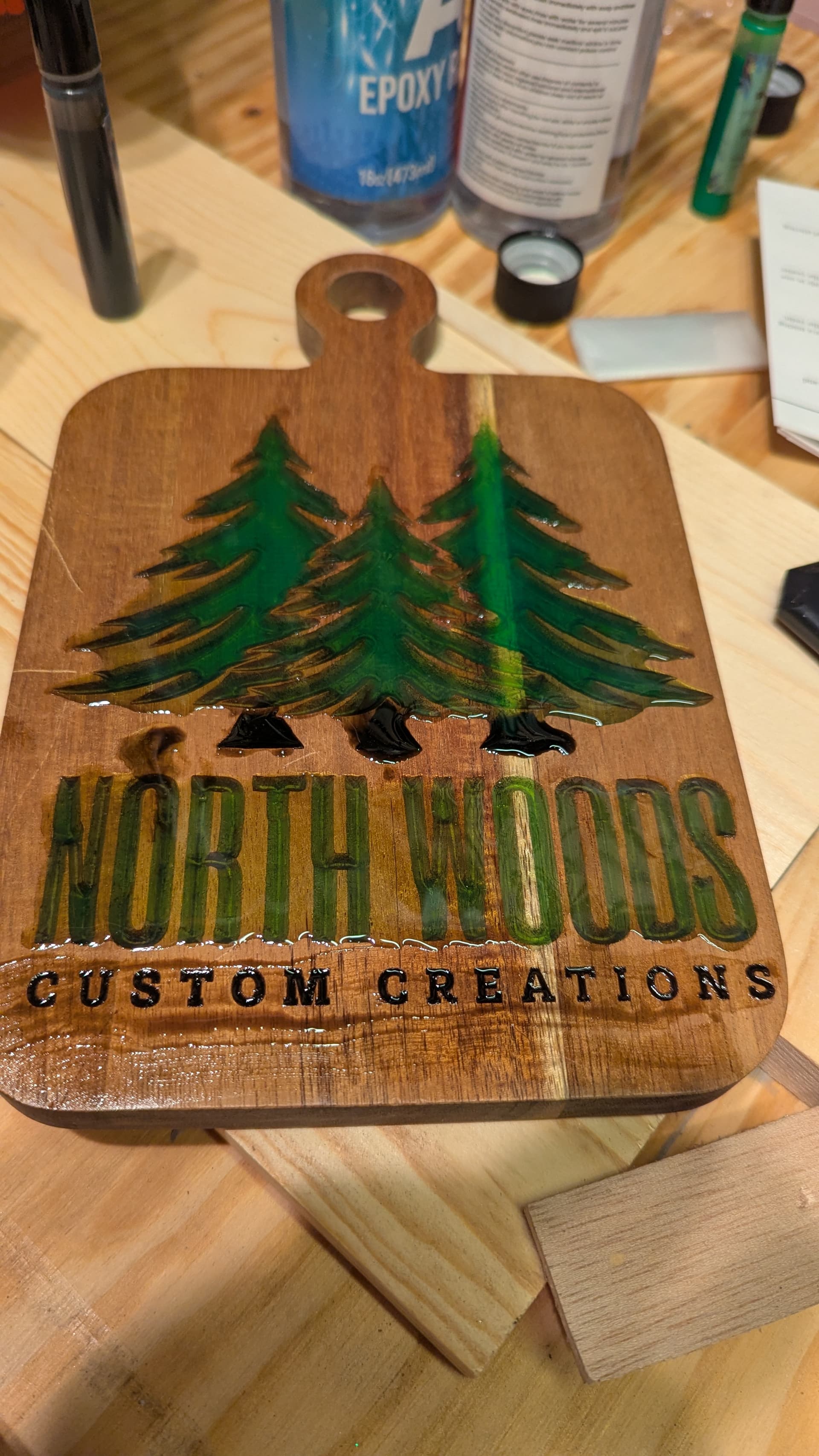 I have one more for a friend who has a small stump grinding business. His logo is pretty fun so I want to epoxy that.