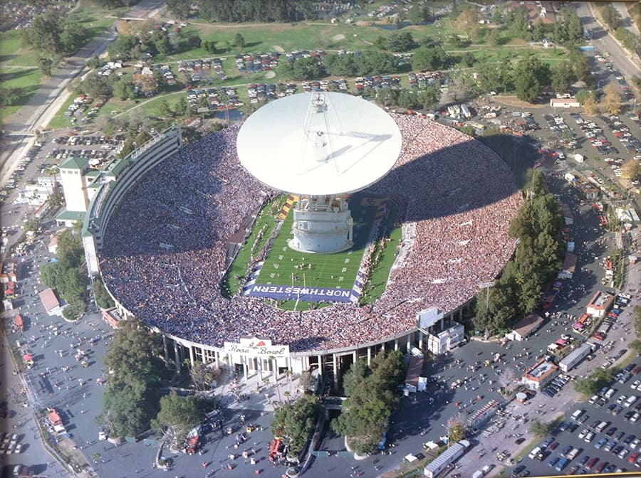Ryan, for scale… If you put one of the big boys like DSS-43 (70 meter dish) inside the rose bowl, it would look like this: