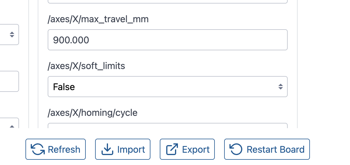 I’m changing [ /axes/X/max_travel_mm ], saving then restarting the jackpot 3 controller, but I’m still able to move past these limits. Is the the right parameter?